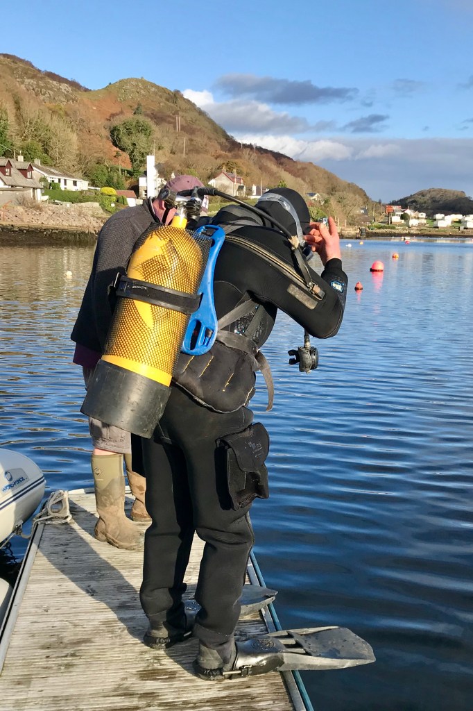 Help, as often happens in these parts, was literally within shouting distance. Within a couple of minutes a gem of a guy, fully suited up in dry-suit and oxygen tank, passed the engine up to us with the kind, if not necessarily entirely true, words: ‘ach we’ve all done it’.