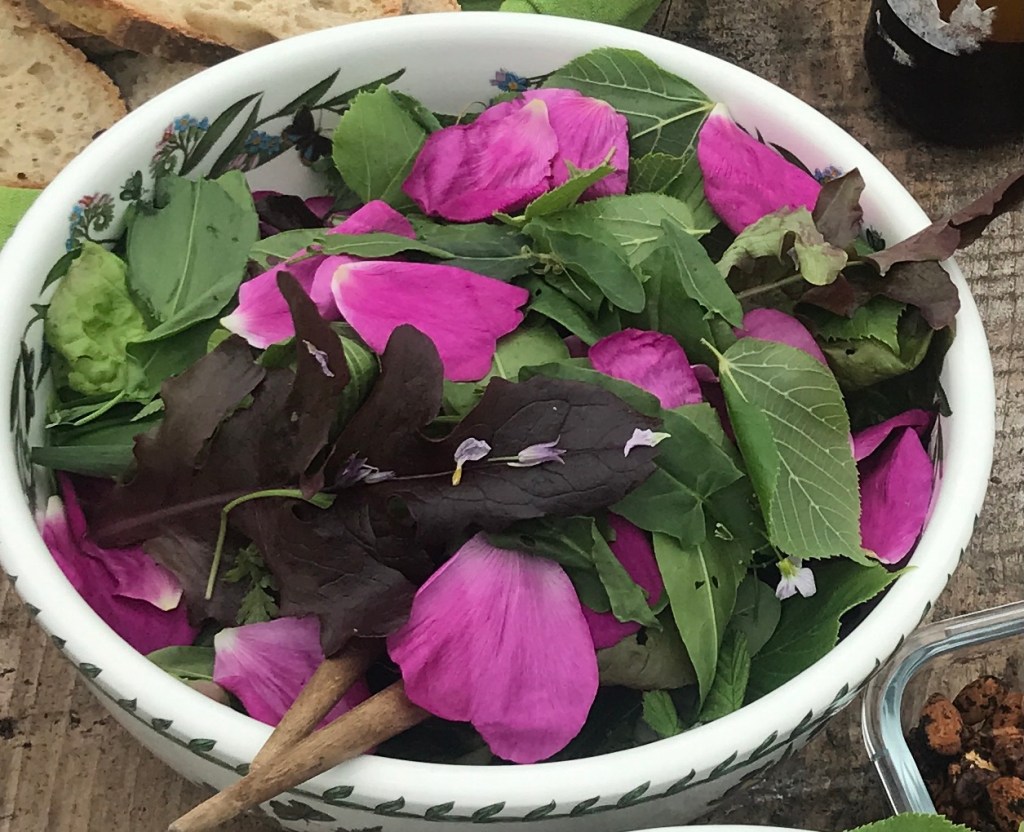 Our little group learned just how much nature provides so readily and abundantly even without the protection from the elements that we provide for our cossetted indoor veggies. Speaking to participants during and after the course, however, there was one jaggy wee thorn among the edible roses; each of us had a partner, spouse or offspring that would run a mile from any weed we proffered on a plate.